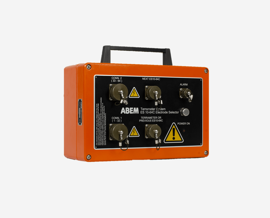 Los selectores de electrodos externos permiten la creación de despliegues de electrodos más largos y (o) más densos, útiles para una mejor resolución, relevamientos más profundos o diseños 3D más grandes. Cada ES10-64C tiene la capacidad de direccionar 64 electrodos y las unidades pueden conectarse en serie para ampliar aún más la capacidad de electrodos. El número máximo de electrodos que pueden ser controlados por un solo Terrameter LS 2 supera los 16.000.